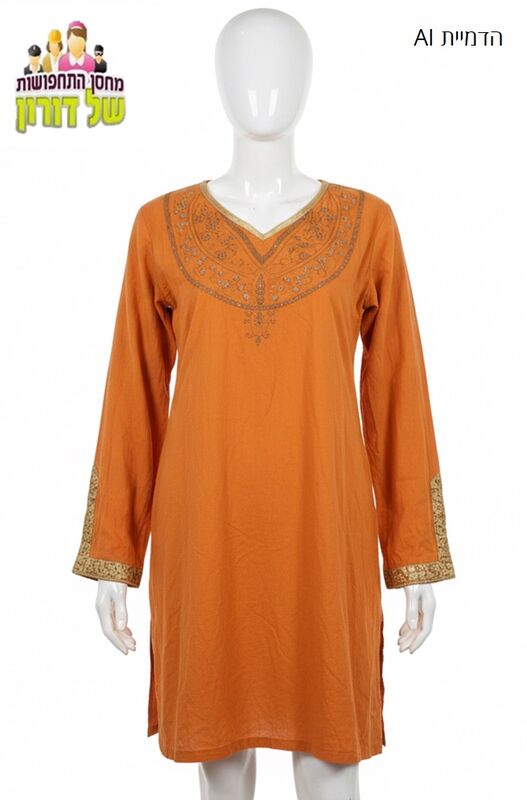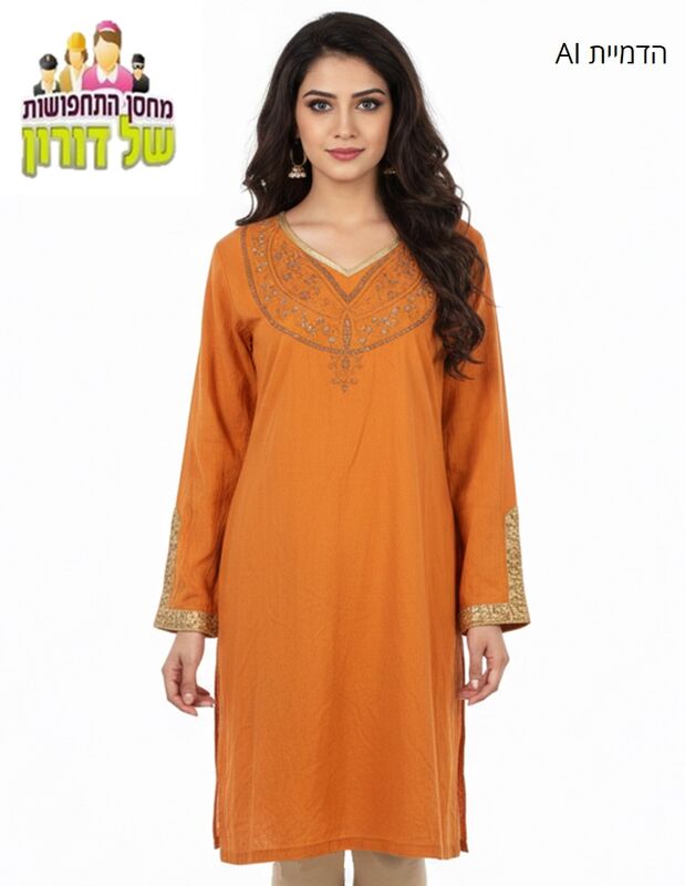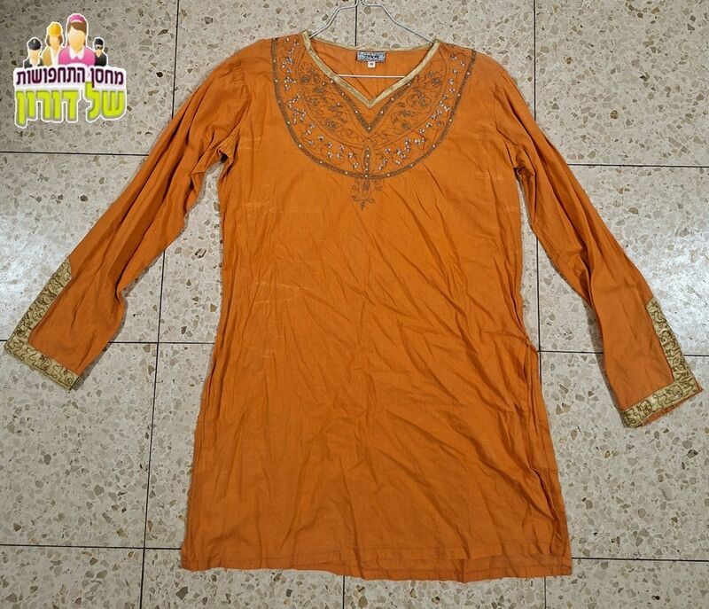 טוניקה קורטה הודית רקומה כתום ענבר