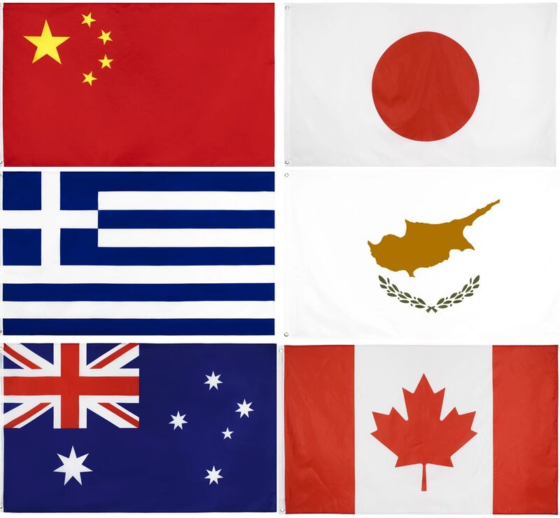 דגלי מדינות תמונה ב: יפן, סין, קפריסין, יוון, קנדה, אוסטרליה.