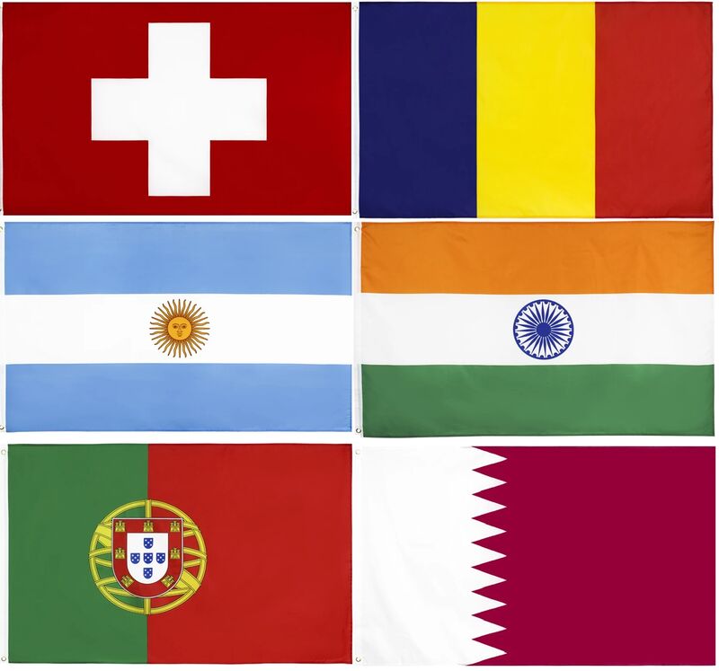 דגלי מדינות תמונה ג: רומניה, שוויץ, הודו, ארגנטינה, קטאר, פורטוגל