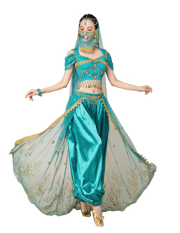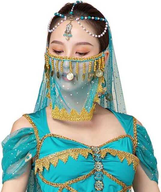 חלק עליון, מכנס שרוול, של , רעלה, שרשרת תכשיט לראש.