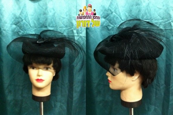כובע ליידי שחור ונוצה