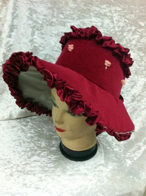 כובע ליידי תקופתי קטיפה אדומה